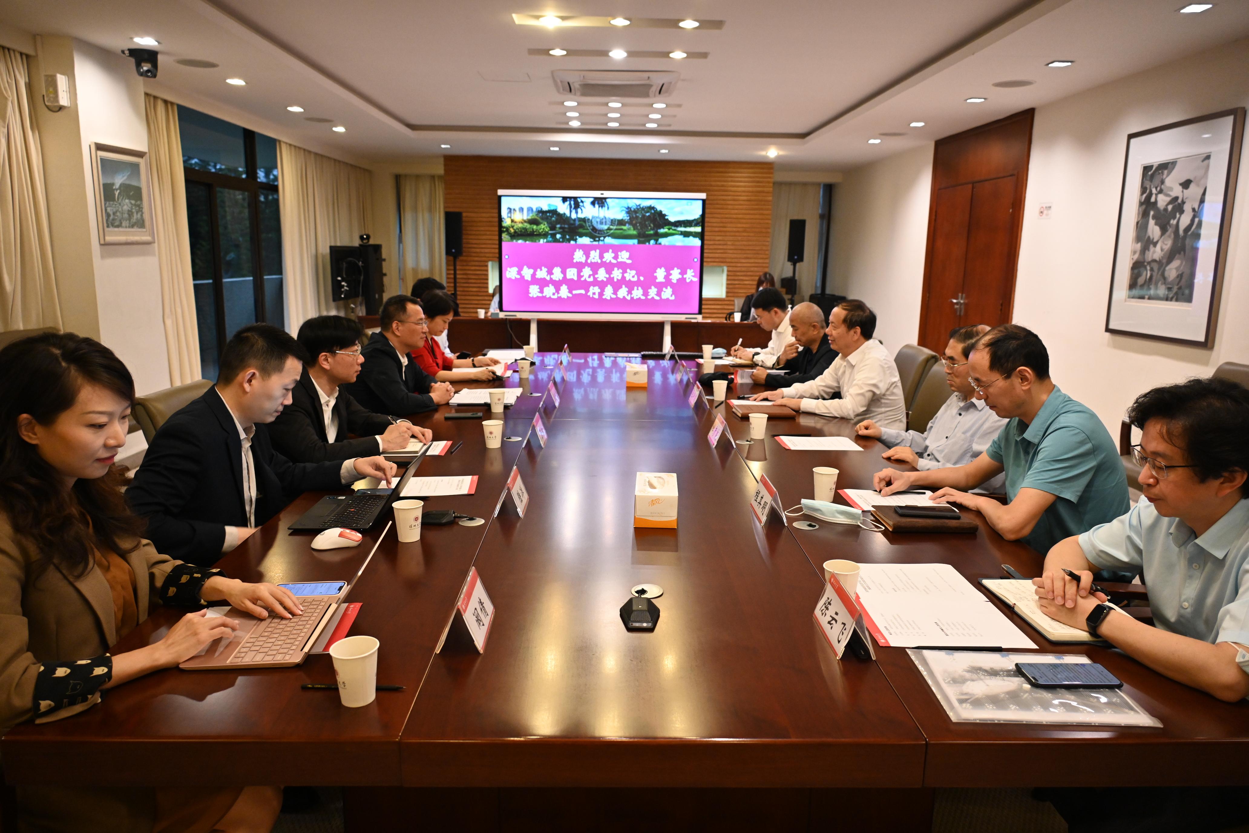 深圳大学党政办公室、科学技术部、学生部等相关部门负责人,深智城技术质量部、行政管理部、战略部、技术部等相关负责人参加会议。