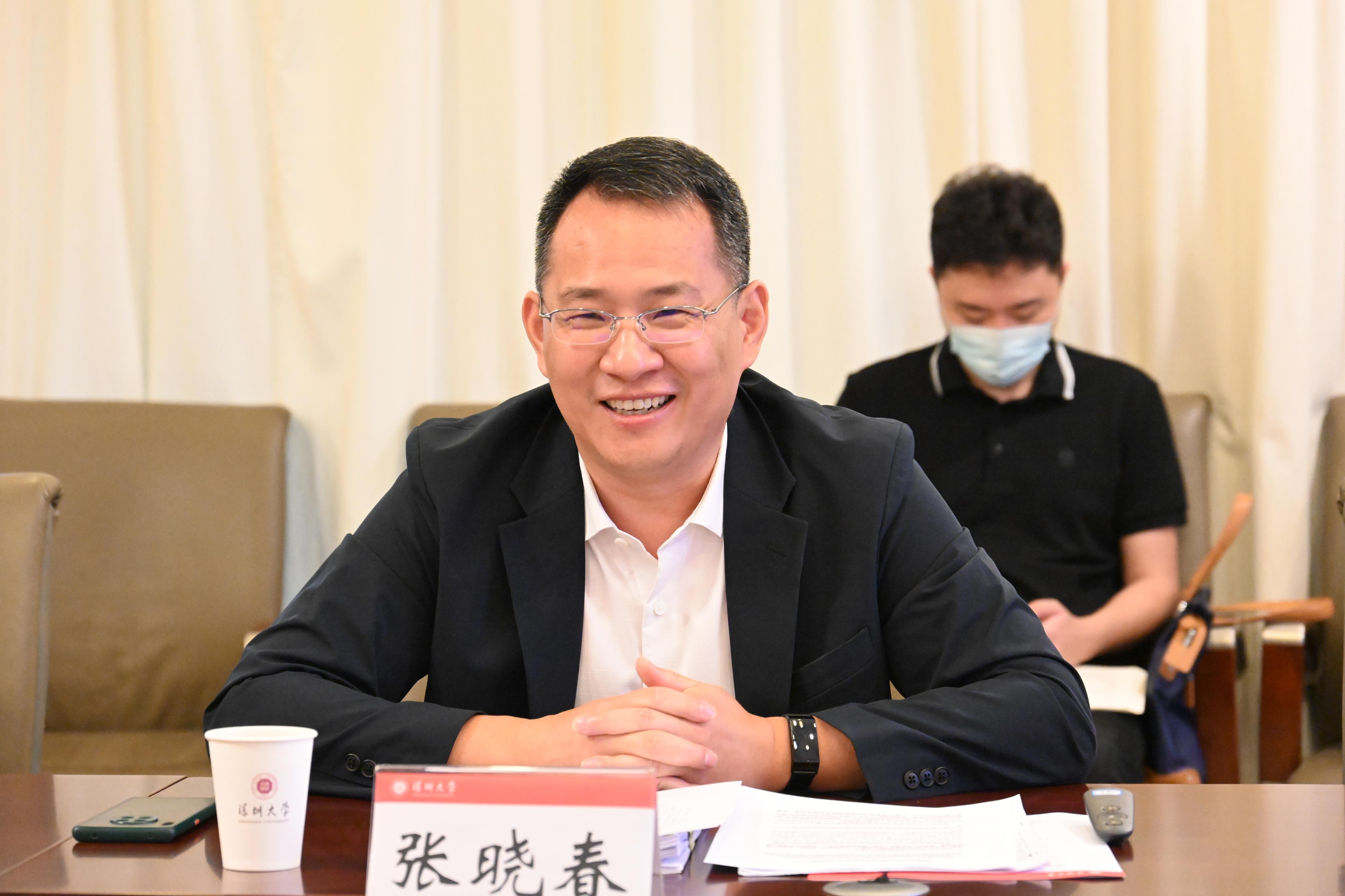 张晓春致辞并介绍集团发展情况。深智城成立在党和国家高度关注、积极推进智慧城市与数字共建的大方向、大背景下,致力于为智慧城市和数字政府的建立提供高标准、一站式、一体化综合解决方案。集团成立以来与深圳大学在人才培养等方面积极开展合作,深智城始终是深圳大学的实习基地,深圳大学也为深智城输送了一批批优秀人才。张晓春表示,未来深智城寻求进一步推进与深圳大学的多方面交流和深度合作,希望深圳大学在技术创新方面为深智城提供意见建议,双方共同致力于深圳加快建设具有全球影响力的科技和产业创新高地的目标,为特区高质量发展作出更大贡献。