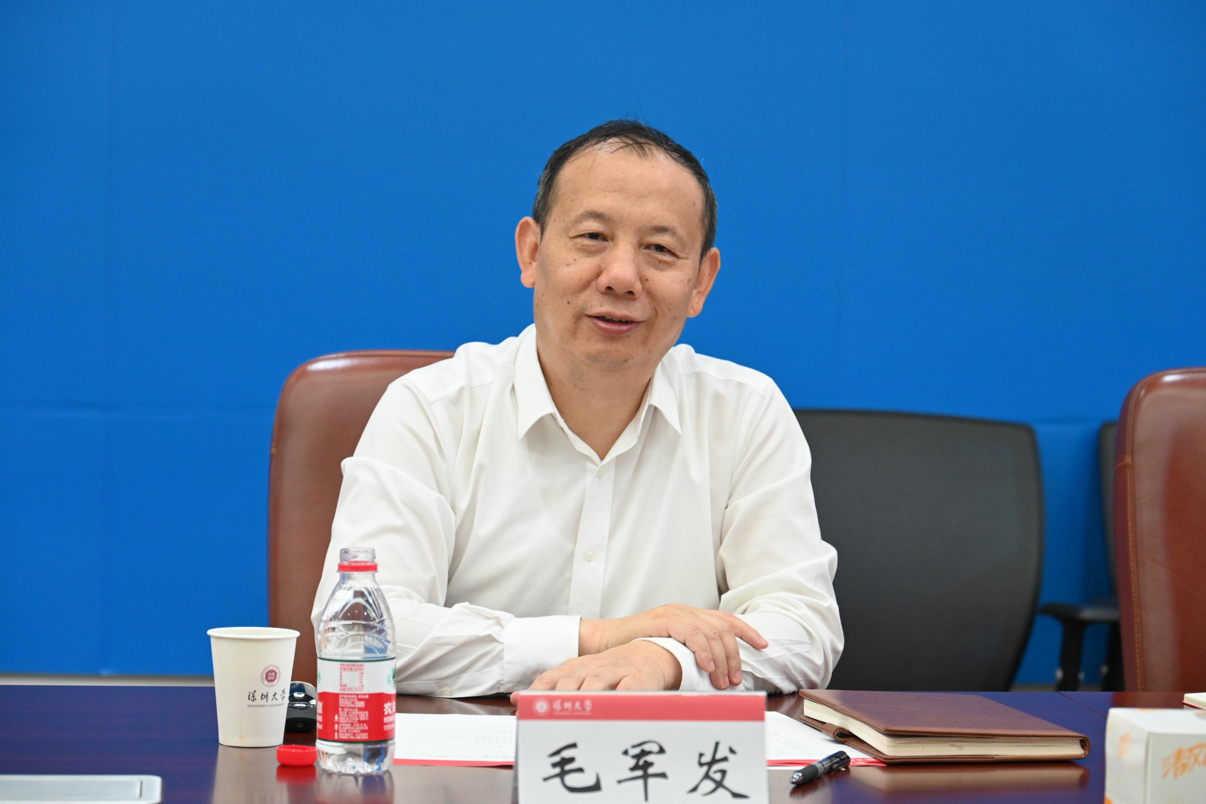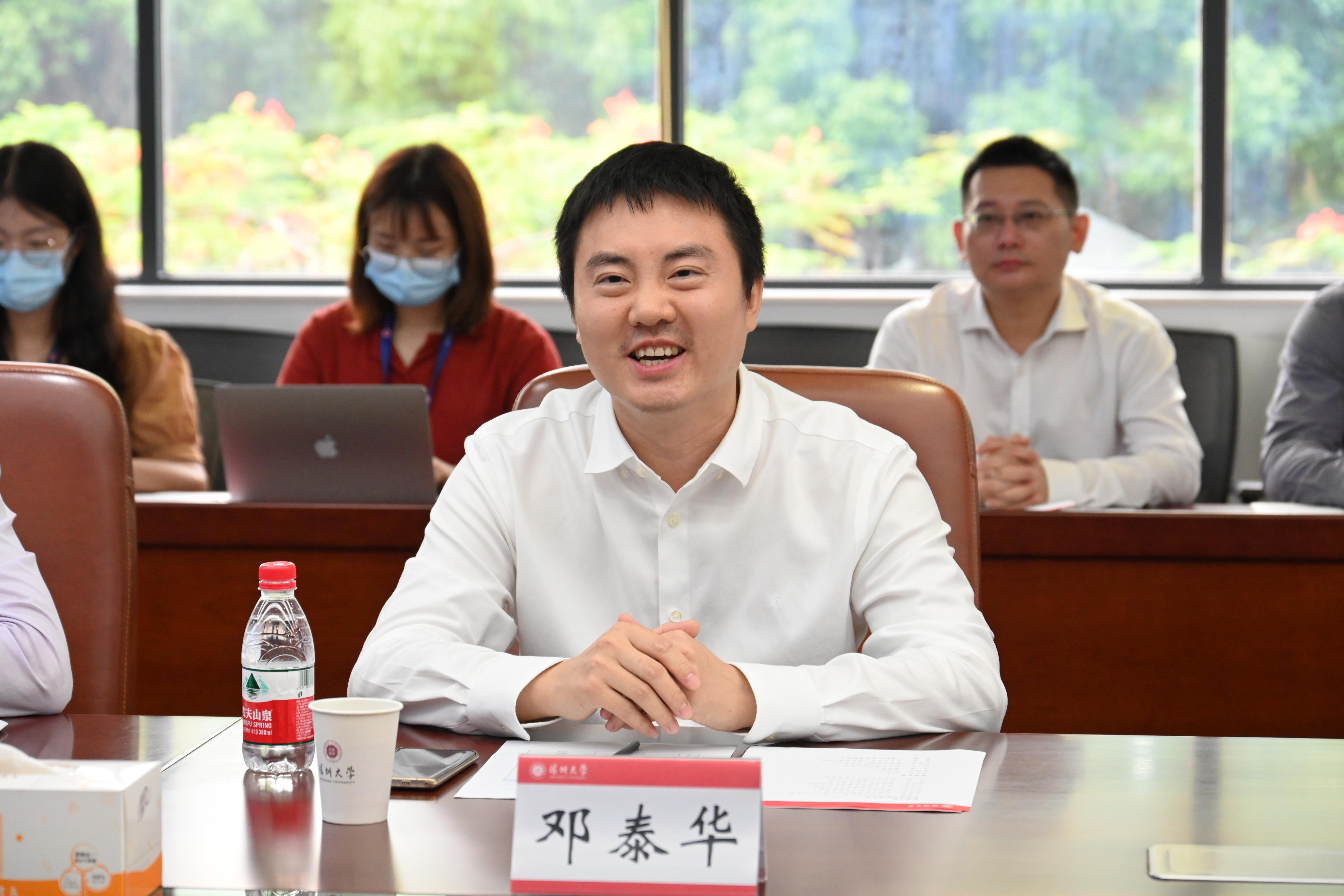 会上,毛军发代表学校对邓泰华一行来访表示感谢与欢迎,并简要介绍深圳大学的建设发展情况。他表示,华为公司与深圳大学一起在深圳成长、壮大,共同见证了深圳经济特区波澜壮阔的发展历史。在此期间双方携手合作,为深圳经济特区建设发展培养输送了大批人才,作出了积极贡献。毛军发指出,“智能基座”是十分具有战略意义的项目,特别是协同育人基地揭牌的一年多来,双方通过更为紧密、深入的合作,构筑起了更为科学、可持续的协同育人模式,促进了产业与人才生态的协同发展。他表示,此次会议是为未来合作开新局之举,双方将进一步拓展合作空间,期待取得更多丰硕成果。