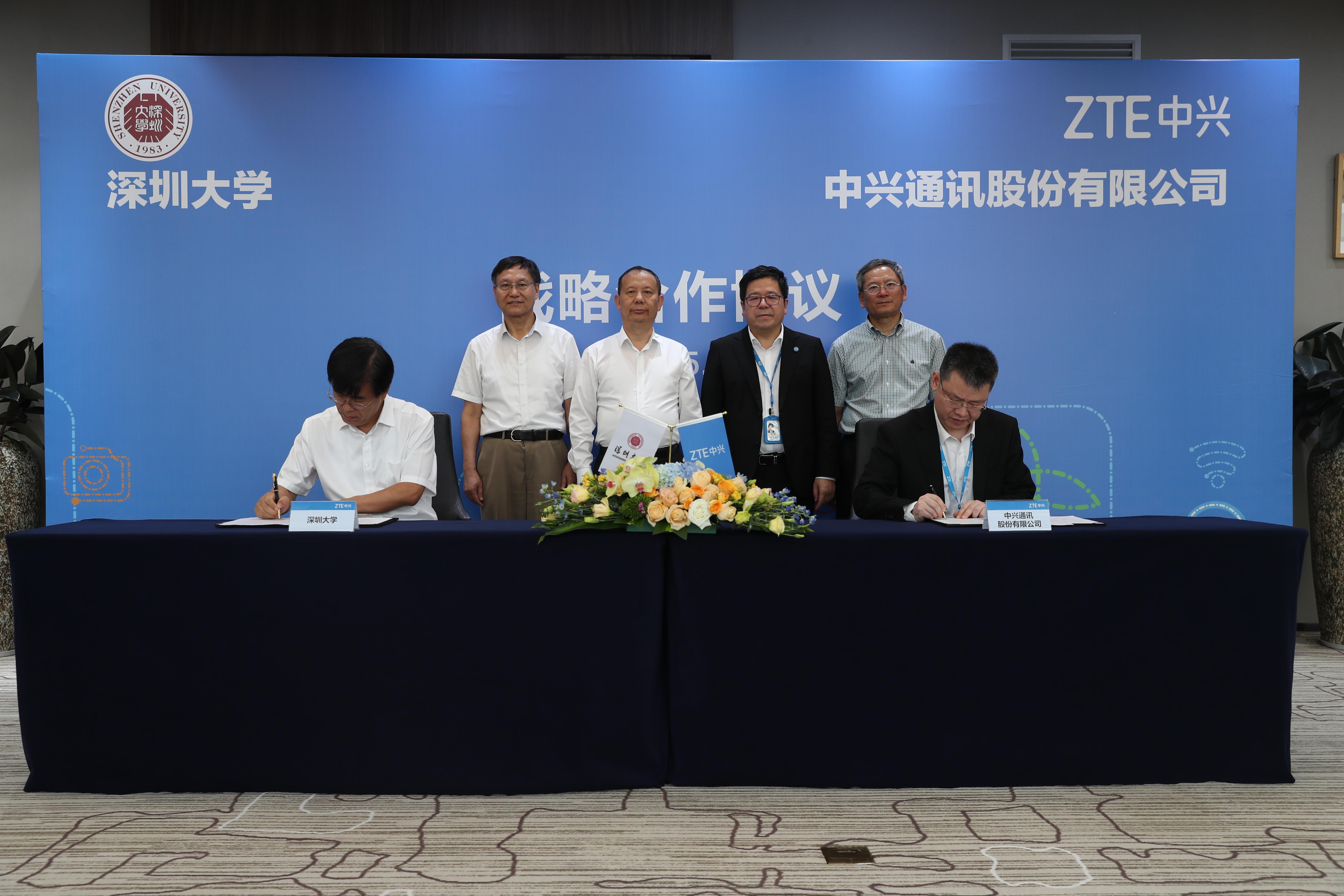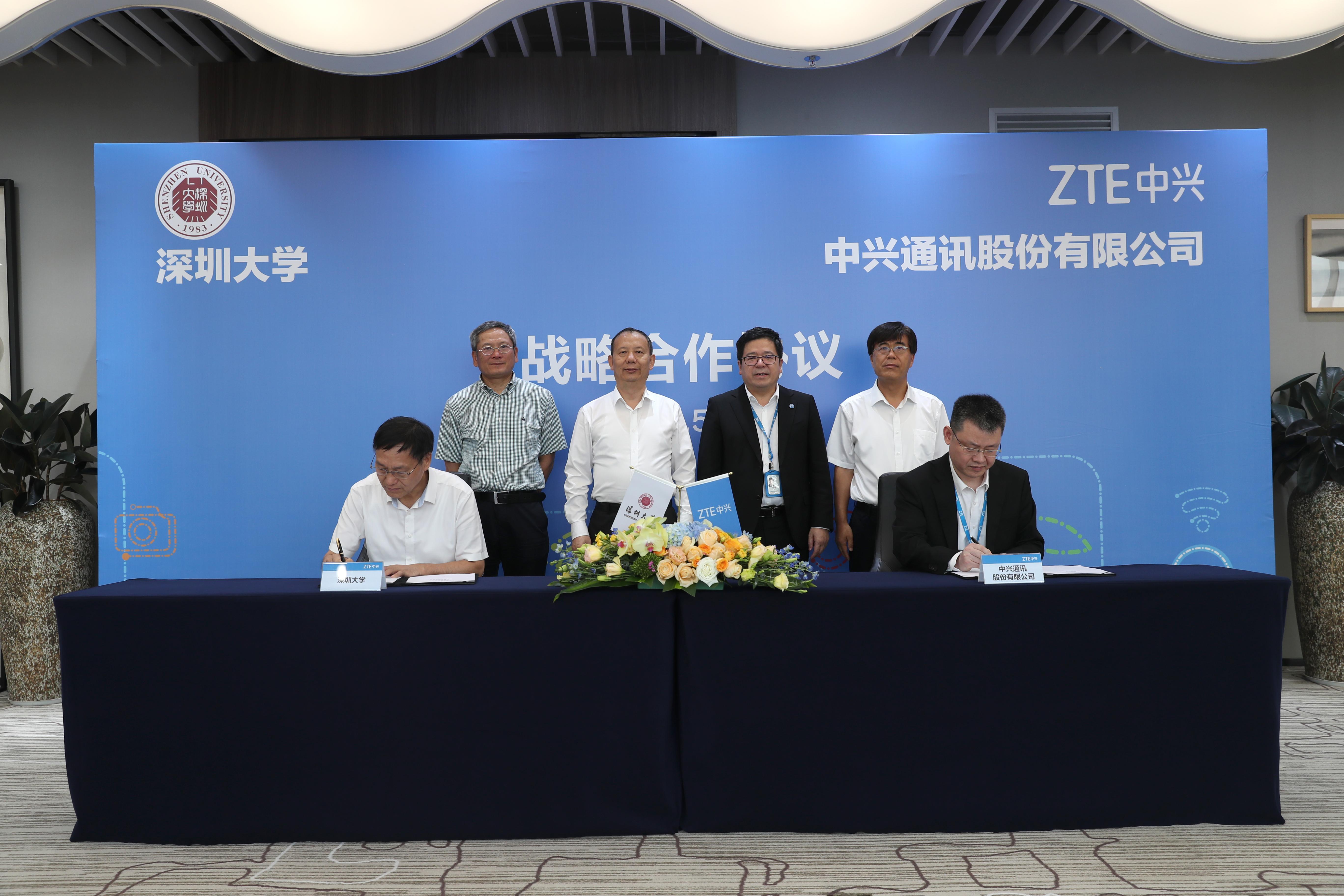 5月25日,在2022中兴通讯“创兴日”开幕大会上,深圳大学与中兴通讯举行校企合作签约仪式暨实习基地揭牌仪式。深圳大学校长毛军发,副校长张学记、汪永成,中兴通讯董事长李自学,监事长谢大雄,高级副总裁王翔出席仪式,双方代表签署战略合作框架协议及实习基地建设协议。