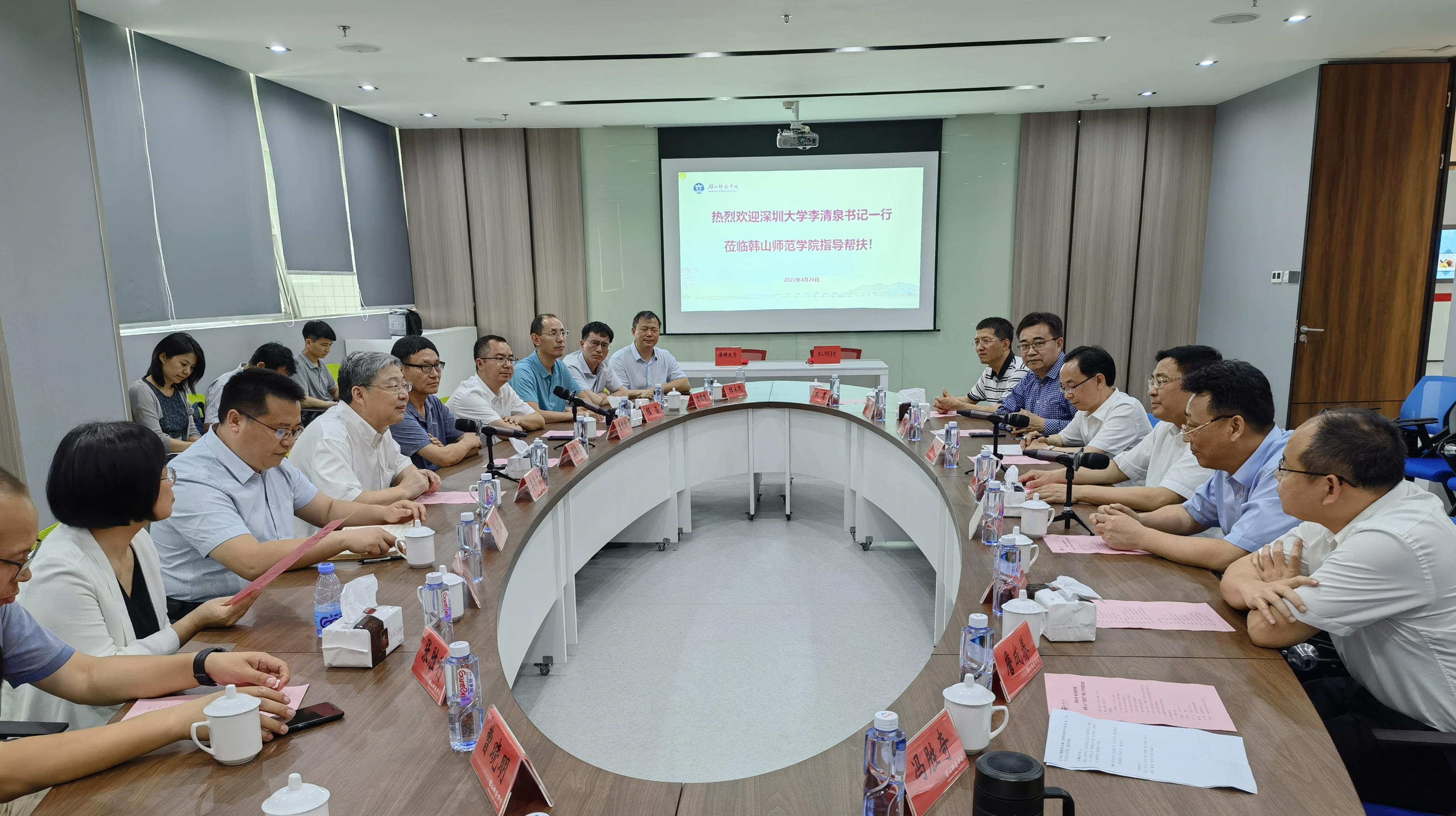 深圳大学党政办公室、党委组织部统战部、党委宣传部、发展规划部、招生办公室负责人及工作专员陪同调研、参加座谈,韩山师范学院相关职能部门负责同志参加座谈交流。