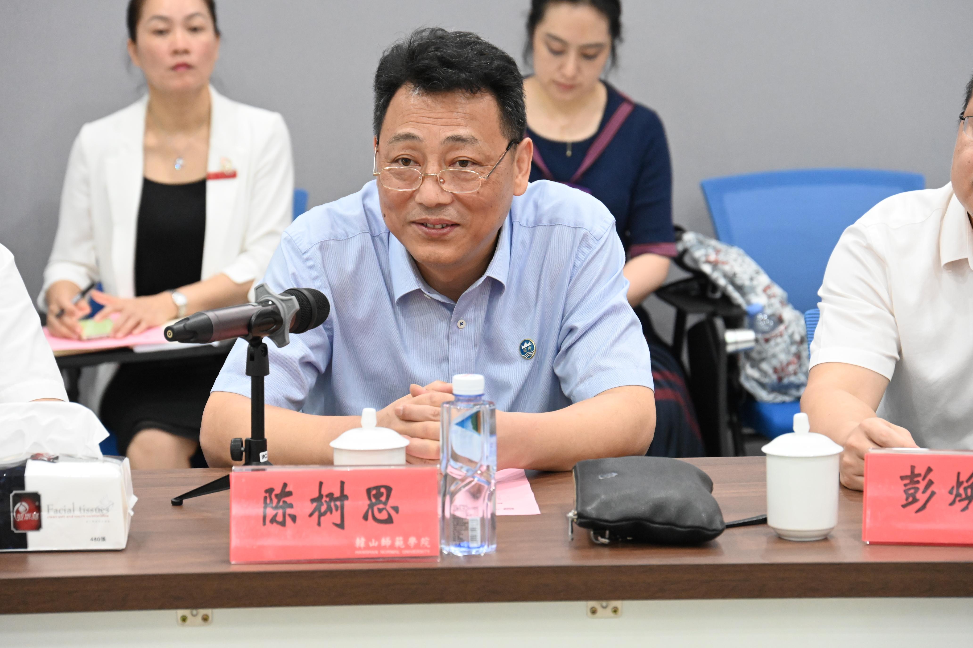 韩山师范学院校长陈树思代表韩师对深大的帮扶支持表示感谢。他表示,深大校领导高度重视、团队尽心付出,三年来两校往来密切,韩师在深大的帮扶下取得很大发展进步,未来将继续沉下心来做好发展建设工作。