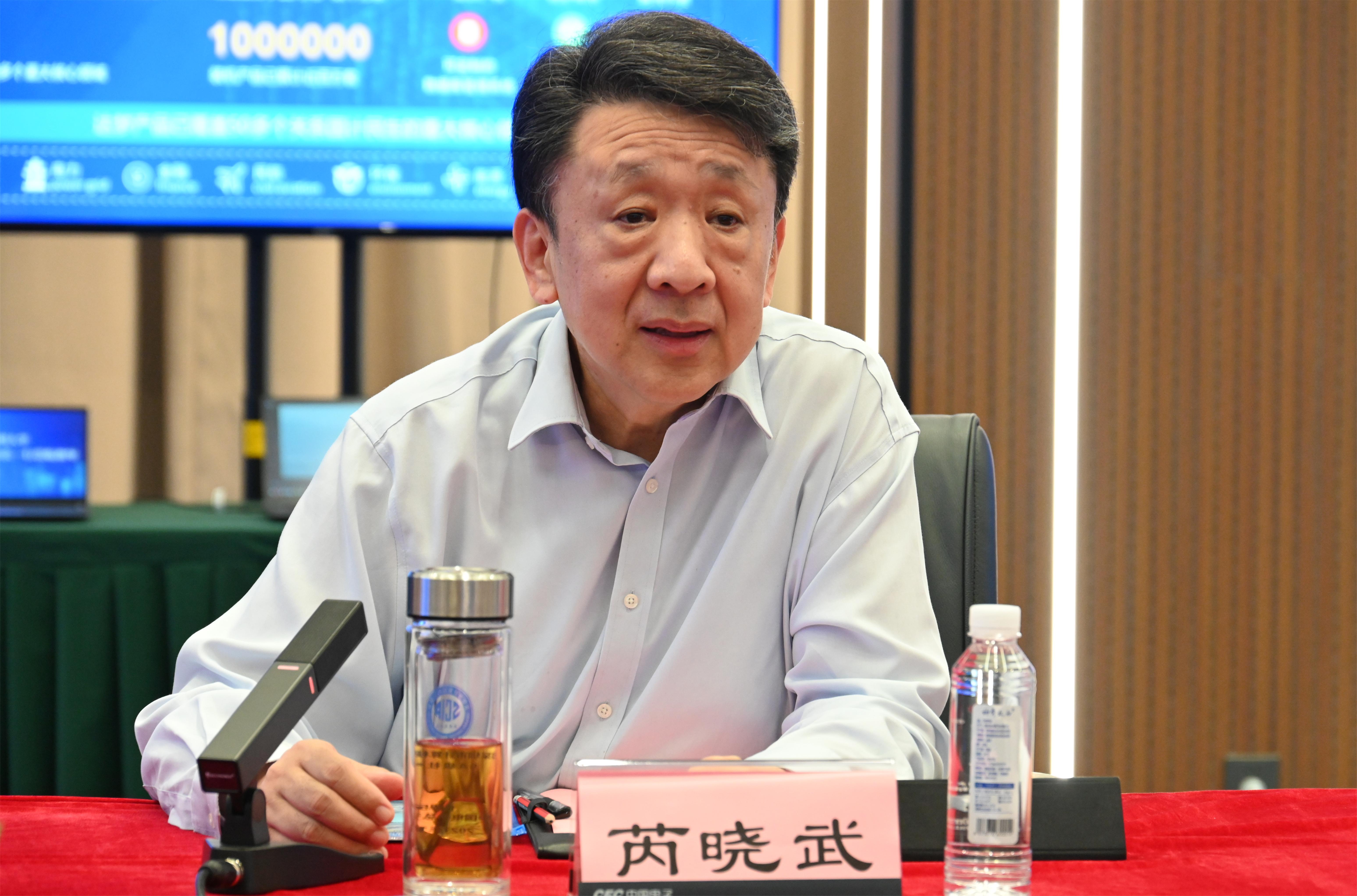 中国电子党组书记、董事长芮晓武对中国电子的现状和发展进行介绍。他表示,中国电子迁驻深圳后面临前所未有的发展机遇,面对推动国家网络安全产业融合发展的新要求,以及广阔的市场前景和巨大的创新型人才需求,中国电子有决心“集中人才”办好“国家大事”,并愿意热烈响应深圳大学的号召,通过联合创新的模式加强合作交流,充分利用人才和技术资源,共同打造校企合作新标杆,推动网信产业创新发展。希望双方尽快落实合作并定期回访。
