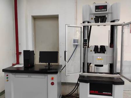 建筑材料实验室主要仪器设备有水泥净浆搅拌机、水泥胶砂搅拌机、胶砂振实台、水泥胶砂标准养护箱、水泥恒温水养护箱、震击式标准振筛机、电热鼓风干燥箱、混凝土搅拌机、混凝土振动台、混凝土标准养护室、水泥抗压抗折试验机(300kN)、混凝土抗压试验机(2000kN)、万能试验机(600kN)、钢筋弯曲试验机等,基本满足水泥、砂、石、钢筋及外加剂等常规建筑材料实验,混凝土配合比设计及性能试验的要求。